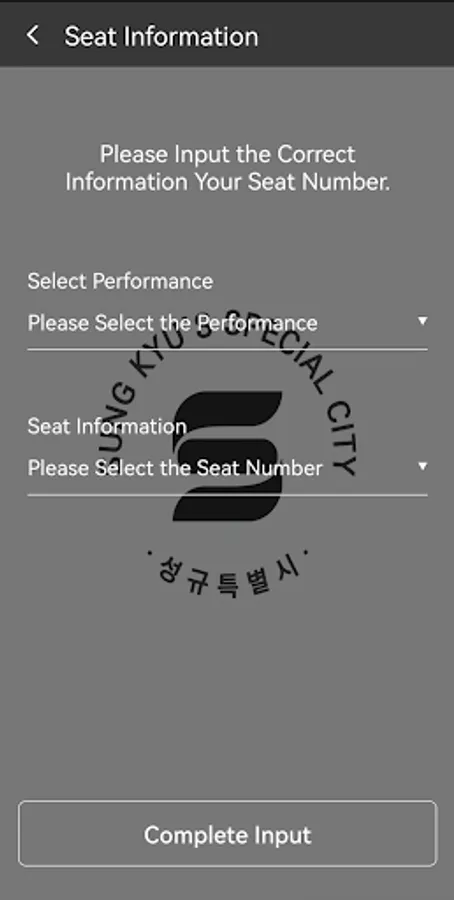 1. Before watching the performance, check your ticket seat information and enter your seat number into the app.