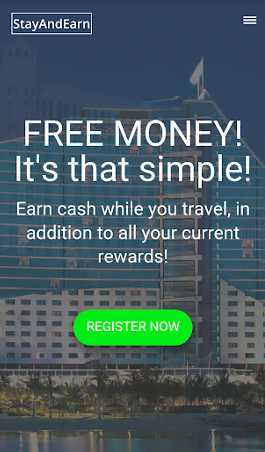 StayAndEarn is a unique and simple to use travel rewards program. Points, earned through qualifying travel, are redeemable for cash!