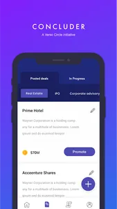 Concluder simplifies the deal making process by making everything automated and providing the solution in a seamless user experience. The application collects and displays deals from across the world. It also lets you post your own deal and make the most out of it through the application.