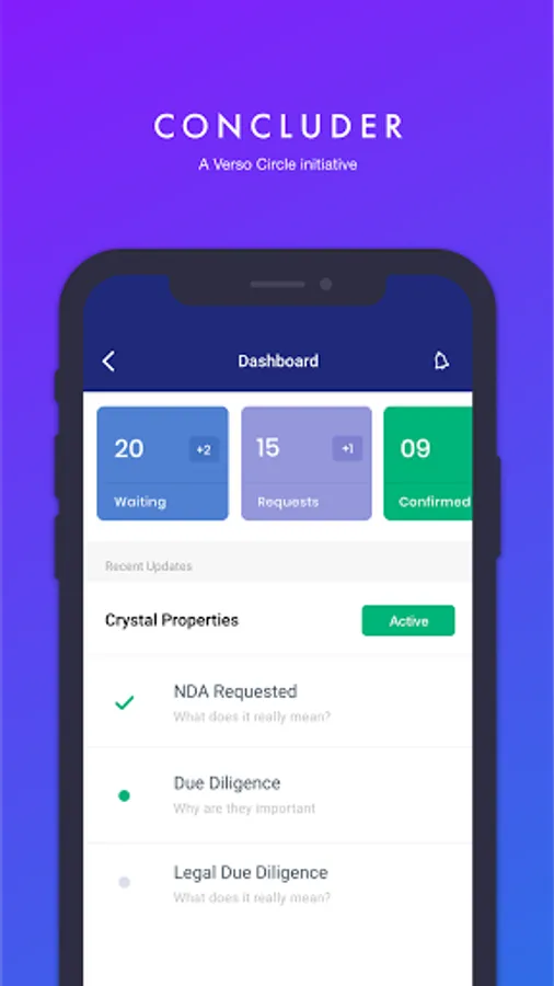 Concluder is an application that is available exclusively for the client’s of Verso Circle, to manage all their deals and associated processes, through the intricately laid out and easy to use application experience.