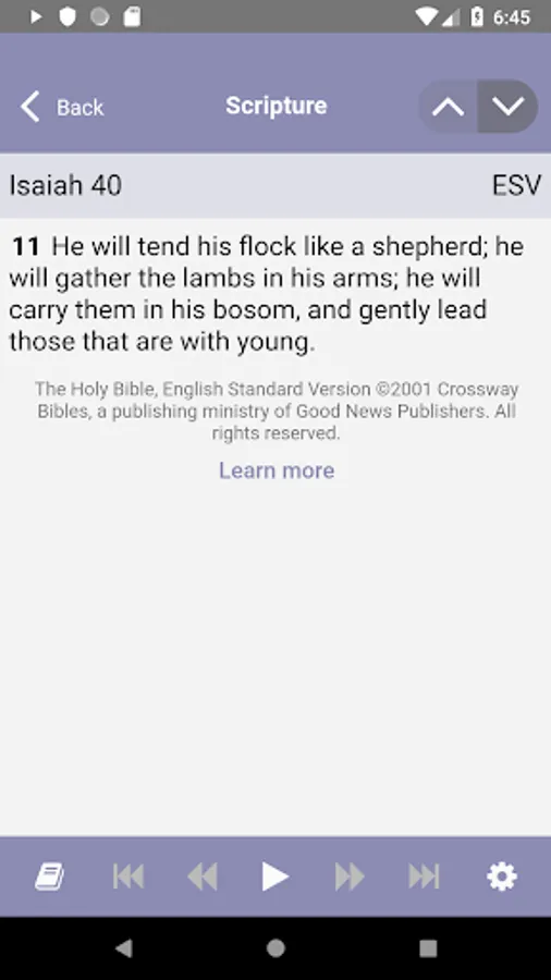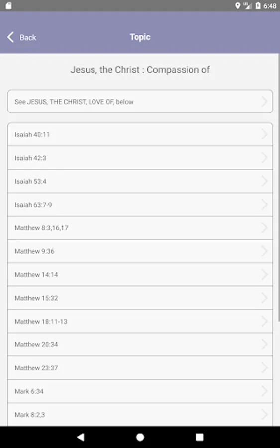 - Audio playback of scripture topics and search results for audio enabled translations.