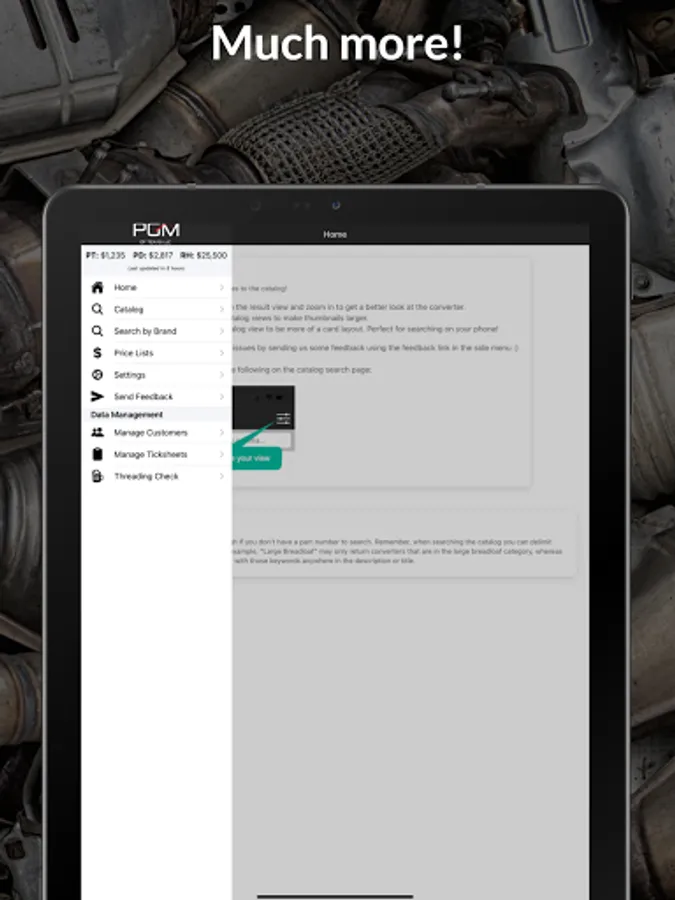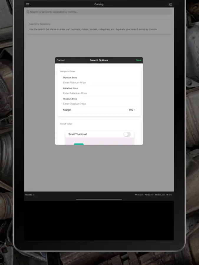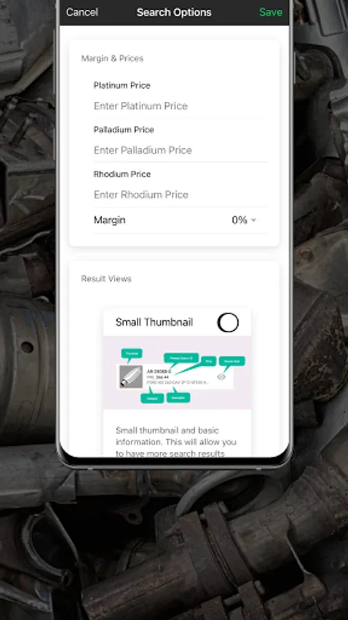 Entering the part number will produce current values of Catalytic converters using live market quotes. Results will train you to identify the primary codes and dismiss others. Search results will also yield buying categories to create a faster method of grading. Create pricing tiers for your clients or employees to follow.