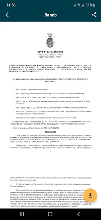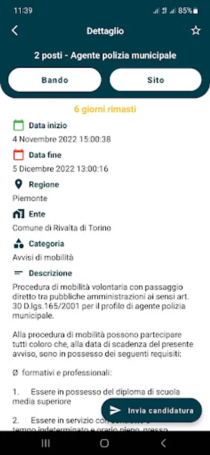 If you click on the contest of your interest, a panel will open where you can view all the related details. But above all you can read, download and share the complete announcement in PDF format, or simply consult the reference site. You can also send your application to the competition via SPID .