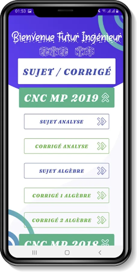 The preparatory classes program is quite large and difficult and you do not have time to waste, our application offers you all the national common mathematics exams (CNC) option MP since the year 2000 with their answers.