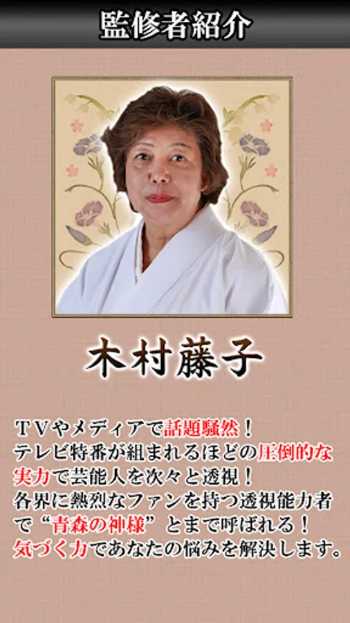 Experience the "Kotodama of God" by Fujiko Kimura, the last see-through ability person who saves you from [distress, regret, despair].
