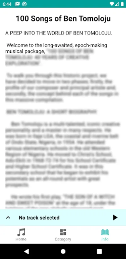 Ben Tomoloju is a multi-talented, iconic creative personality and a master in many respects. He is a pace-setting journalist, by virtue of which he was cited in "WHO IS WHO IN NIGERIA" in 1988 as the pioneer of professional arts journalism in Nigeria. He is a renowned playwright and theatre director, and some of his plays have been performed on the international stage just as he has also represented Nigeria in various cultural missions in Europe, the USA, Latin America and parts of Africa.