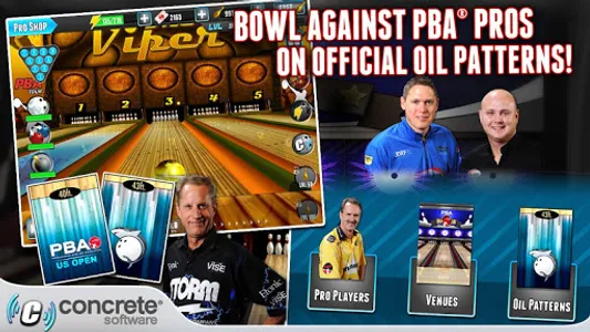 Rise through the ranks against 24 of the PBA’s best bowlers as you bowl for a variety of regional and national championship trophies in the best 3D bowling game. Starting in a local alley with a scuffed up 12lb ball, you’ll hone your skills against bowling legends on your way to competing in the Tournament of Champions!