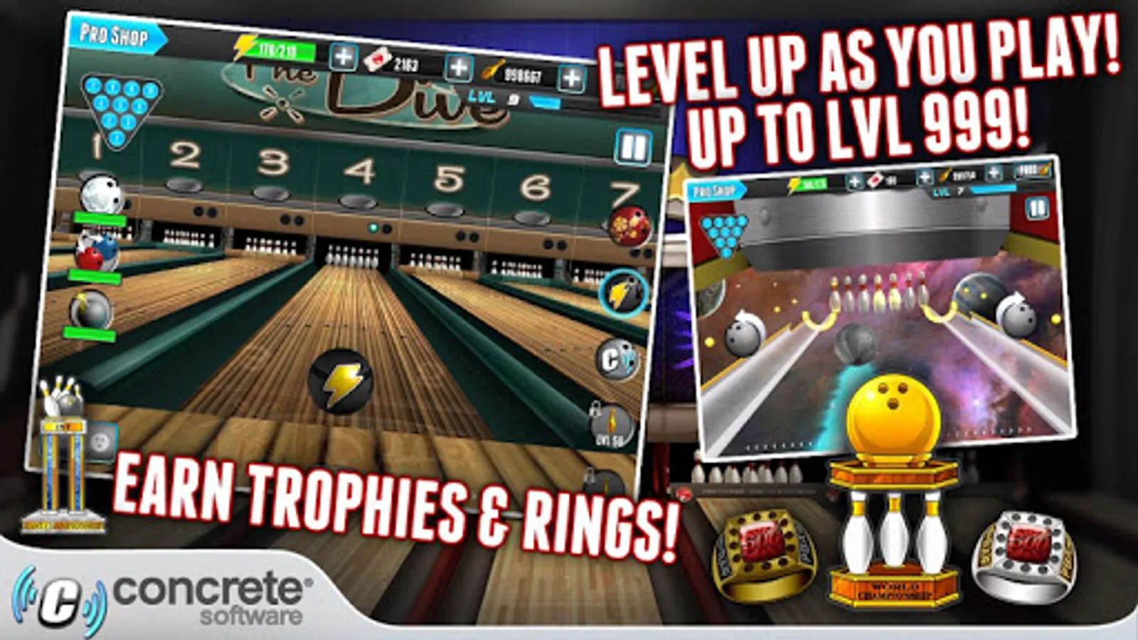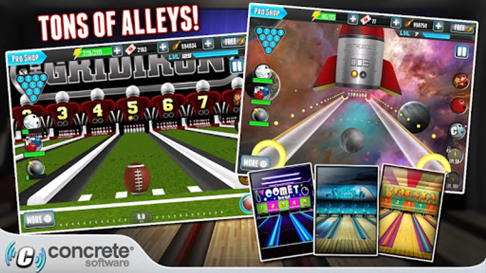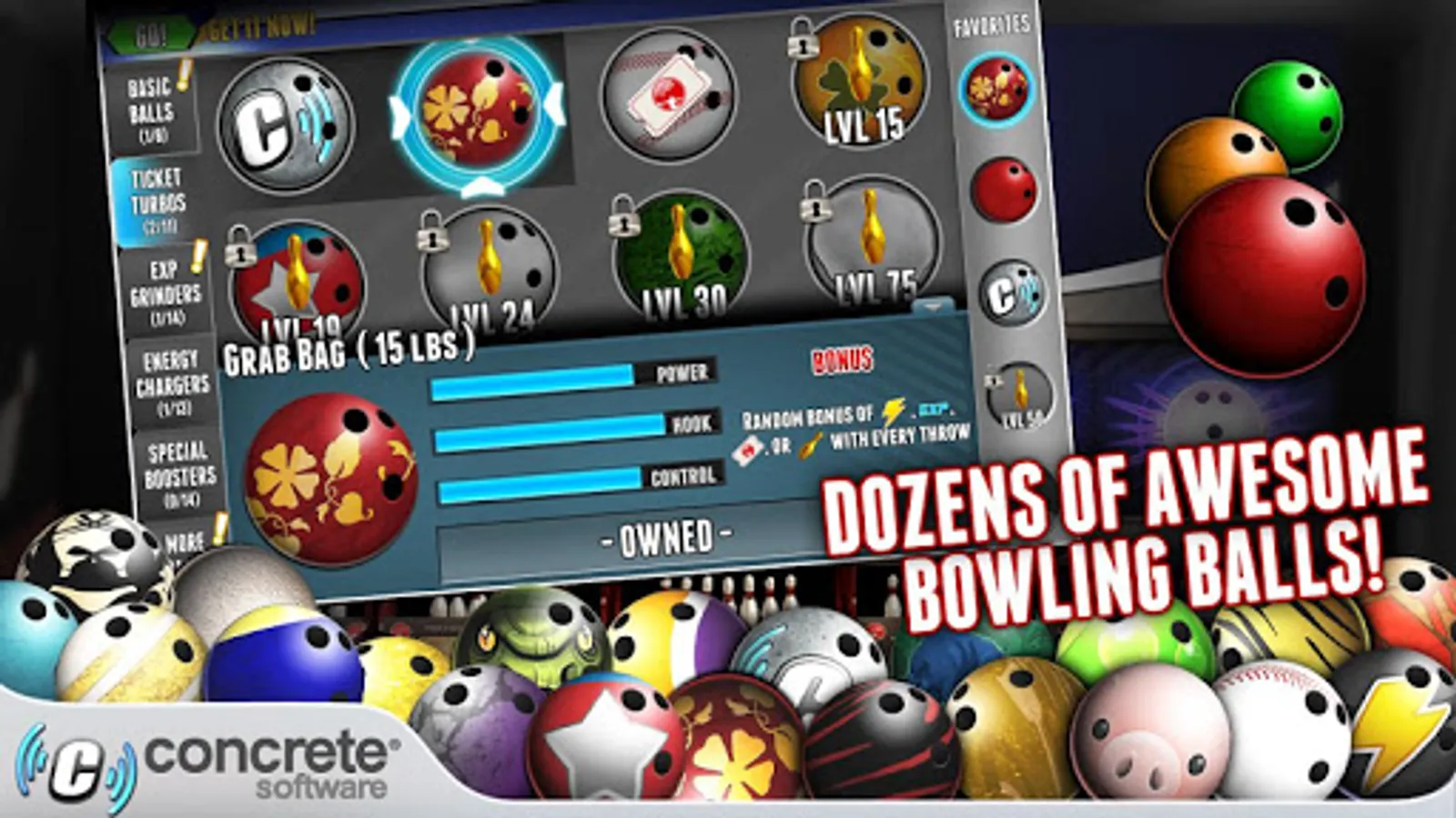 • 100's of different bowling balls available, each with unique stats!