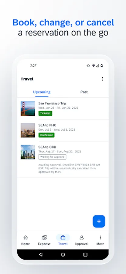 If you use Concur® Travel, Concur® Expense, or Concur® Invoice at work, then download this companion app to your Android to manage your travel and expenses when you’re on the go!