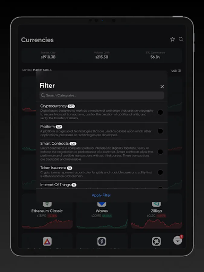 This app is a perfect alternative to CoinMarketCap, CoinCap.io, CoinGecko and Coinpaprika. Need more features? Feel free to reach out!