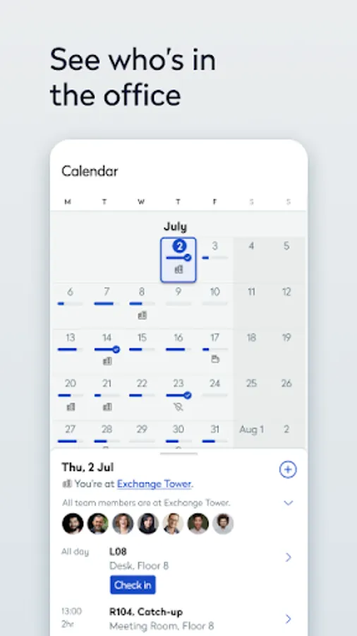 A simple to use app that allows you to book spaces in seconds. With a few taps you can book a workstation or a meeting room, along with other areas like parking, lockers, quiet spaces, breakout zones and more. One screen in the palm of your hand keeps you in control of your daily schedule. See all your bookings, find booked workspaces on a floor plan, and make changes or cancellations to bookings as required. It’s never been faster to check in to a workspace, through a simple tap of a button, or automatically through proximity-based check in. When you need to collaborate with a co-worker, Condeco helps make it happen. You can search in the app to find where they’re working, book an available workspace nearby and start collaborating in minutes.