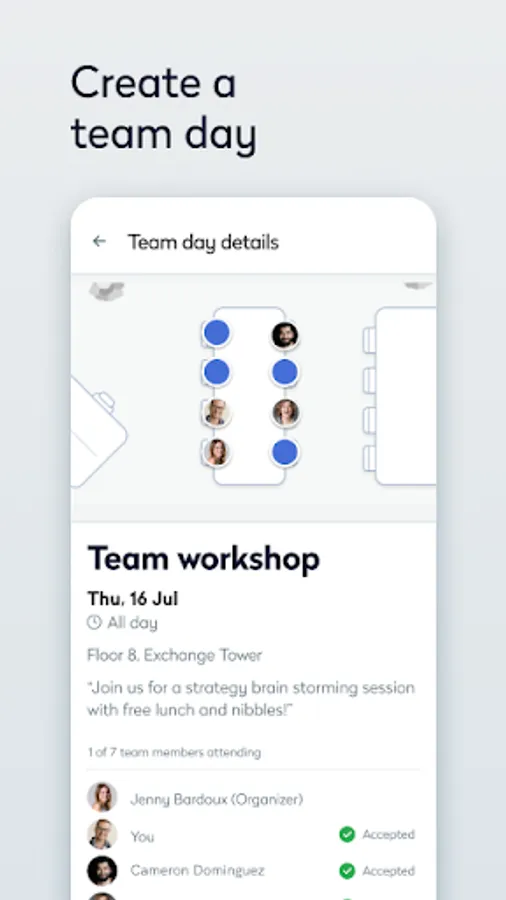 Requires Condeco Cloud subscription. Types of spaces that can be booked within the app depend on your organization's configuration.