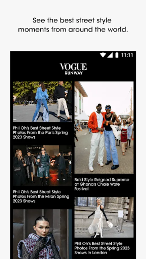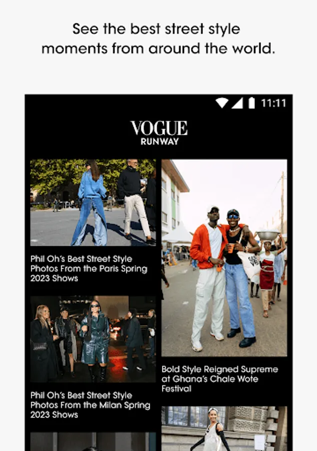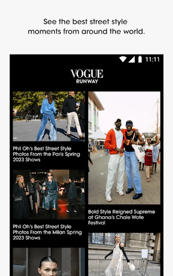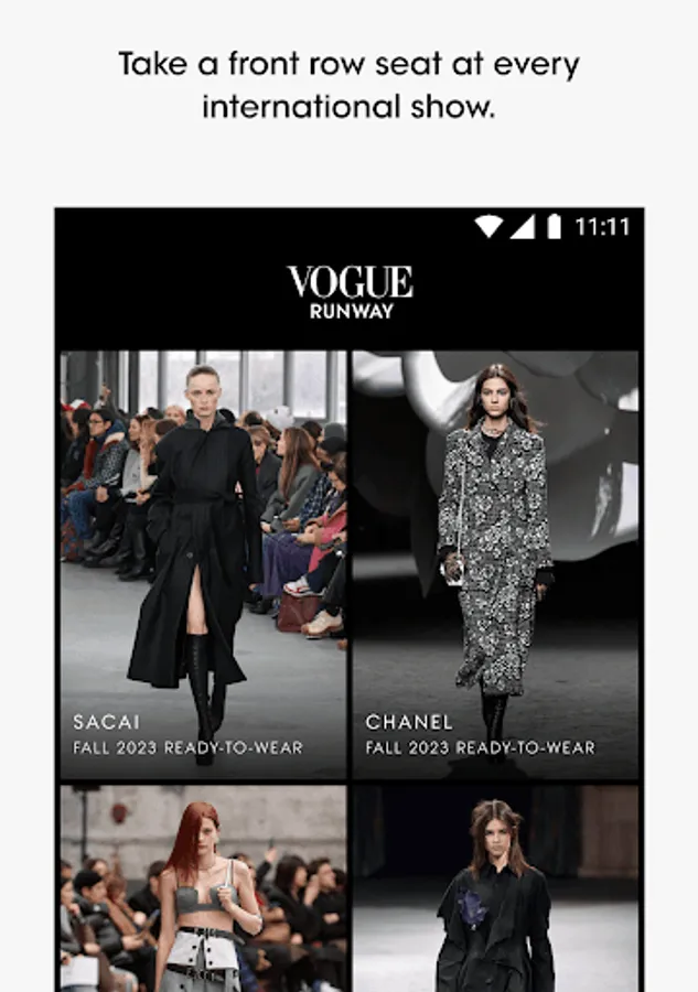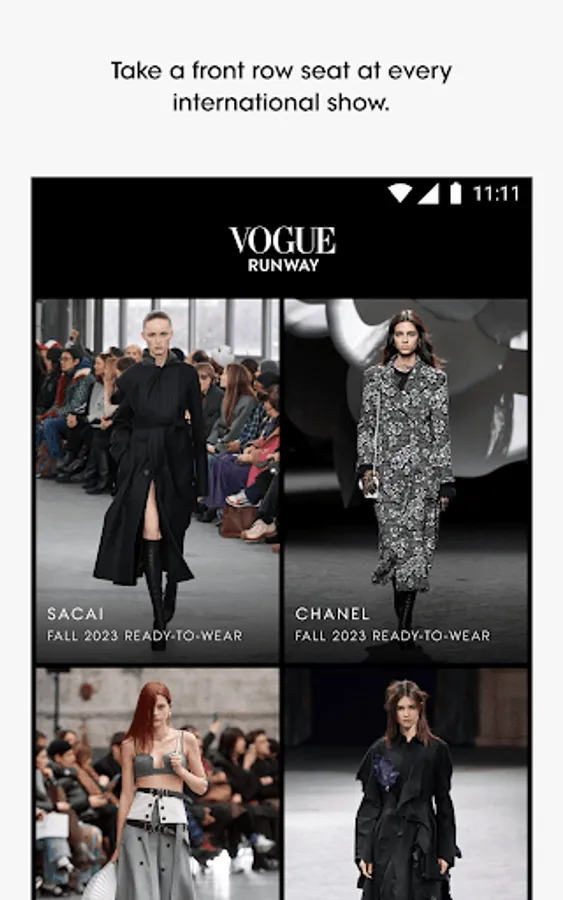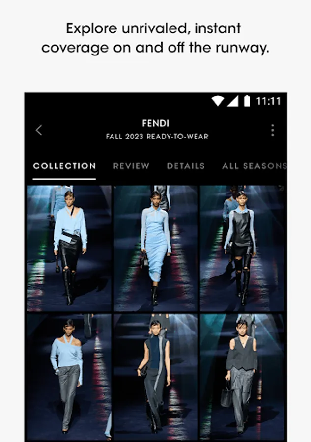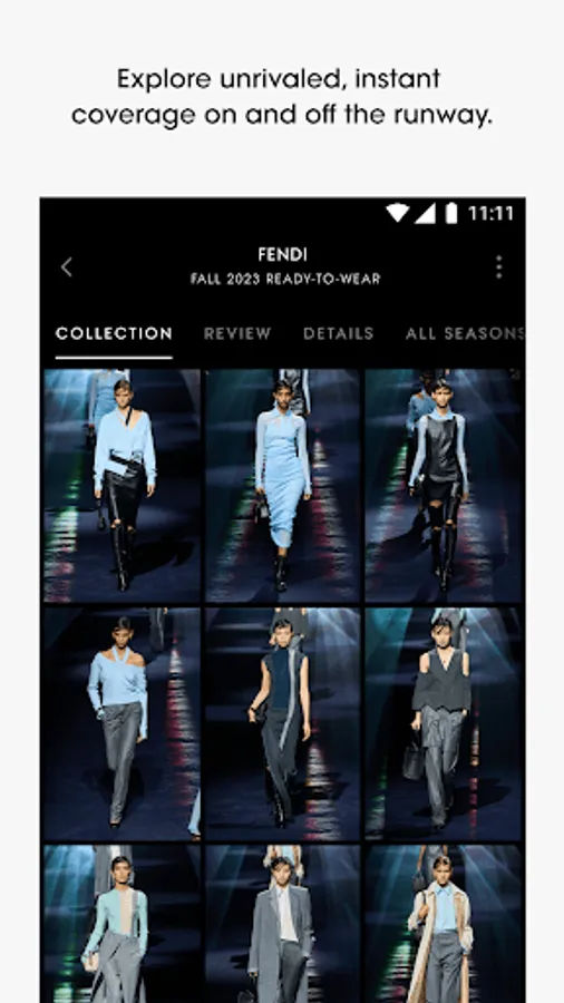 Explore unrivaled fashion coverage and unlimited access to runway shows around the world, from the global authority in fashion media. See runway shows from every angle: clips capturing the catwalk, collection close-ups and details, front row sightings, and backstage happenings.