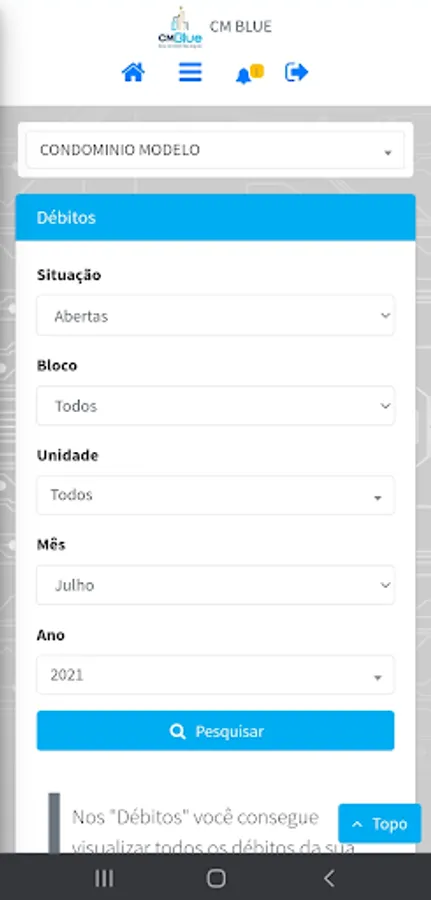 ATTENTION! This application is for the exclusive use of CMBlue customers and users who already have their access to the condominium and/or trustee's area. If you still don't have your access, send your e-mail to: relationship@cmblue.com.br