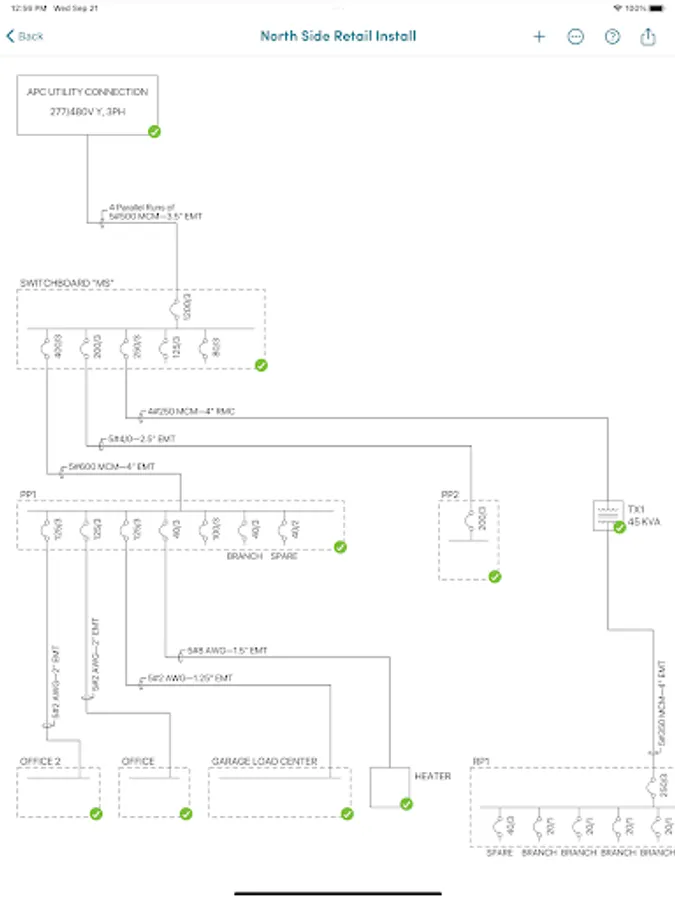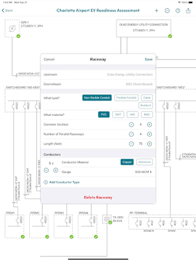 Condoit’s platform is built by electricians, for electricians. Our application puts design tools in the hands of electrical contractors allowing them to quickly and accurately collect electrical infrastructure information in the field, build as-built single line diagrams, design for new equipment, analyze designs against NEC standards, and produce a bill-of-materials in a matter of seconds.