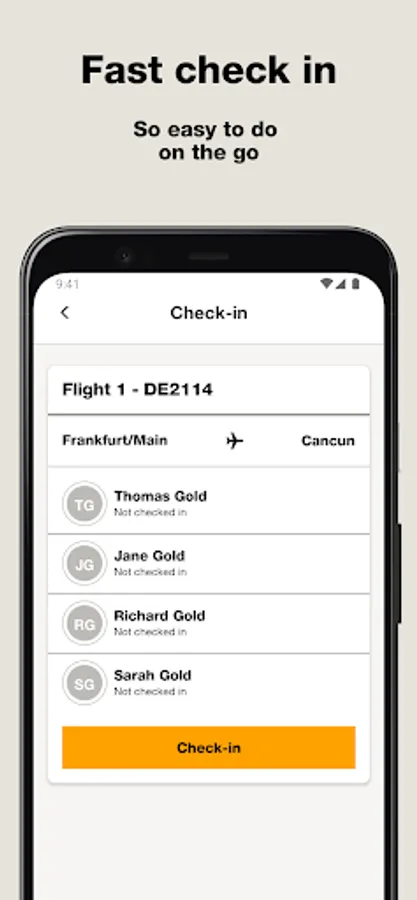 Wouldn’t it be great if getting to your holiday was as easy as slapping on sun cream? This app’s for you if you booked on our website. Check in – it’s a pocket boarding pass. And all your updates (departure gates or any changes) go straight to your phone.