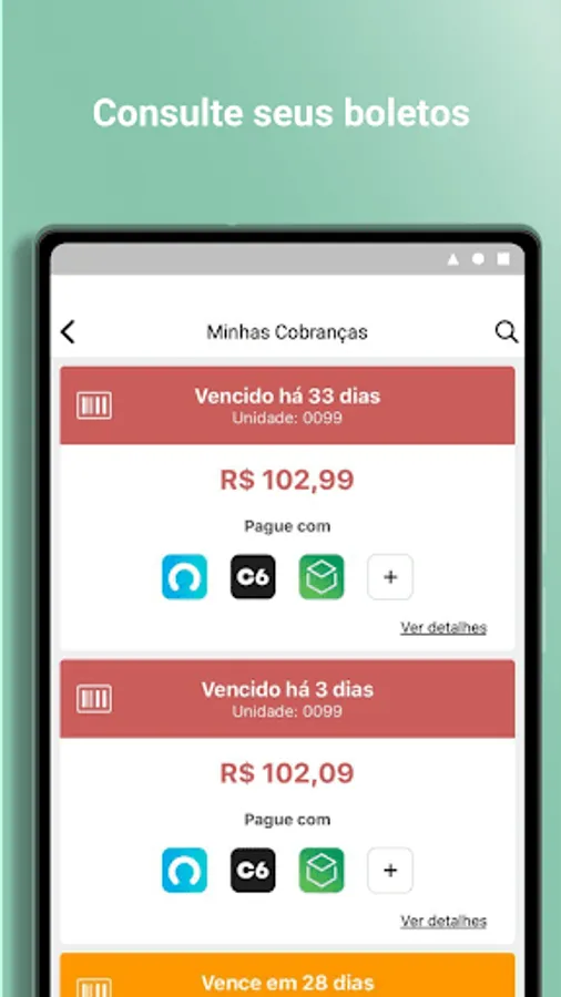 * Copy the digitable line (barcode) to make the payment through your bank application;