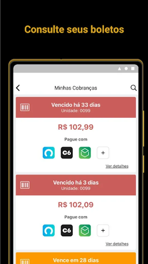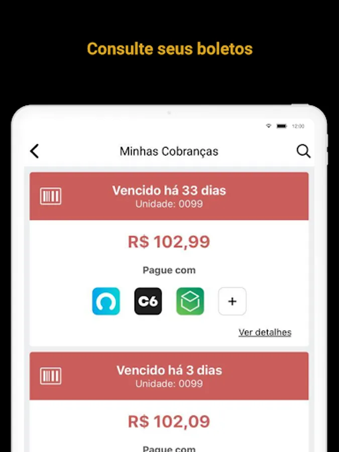 * Copy the typeable line (barcode) to make the payment through your Bank's application;