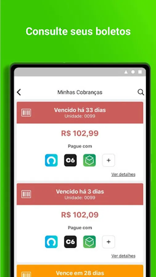 * Copy the digitable line (barcode) to make the payment through your bank application;