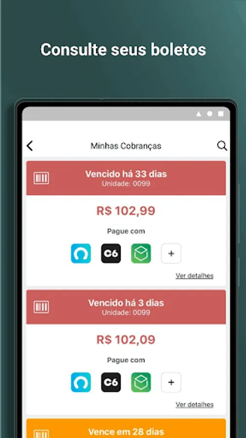 * Copy the digitable line (barcode) to make the payment through your bank application;
