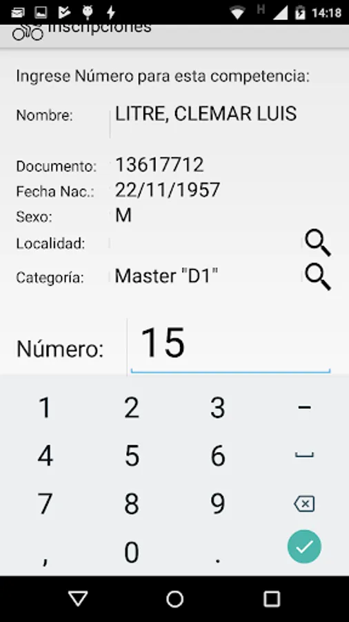 3.- The App searches the database and if the participant is already registered, it shows their data.