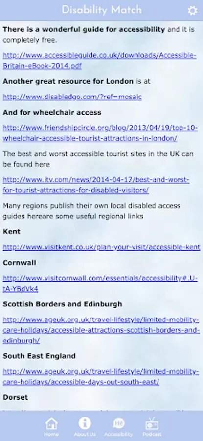 Looking for a fun place to visit with your date that is 'accessible'? No problem! Our app brings you the best in accessible resources for the UK.