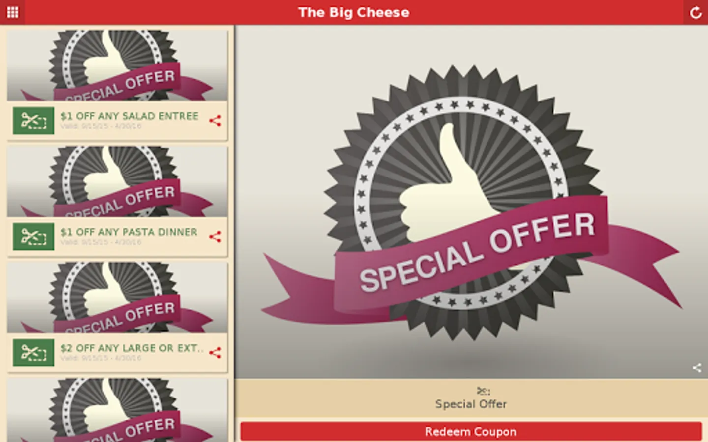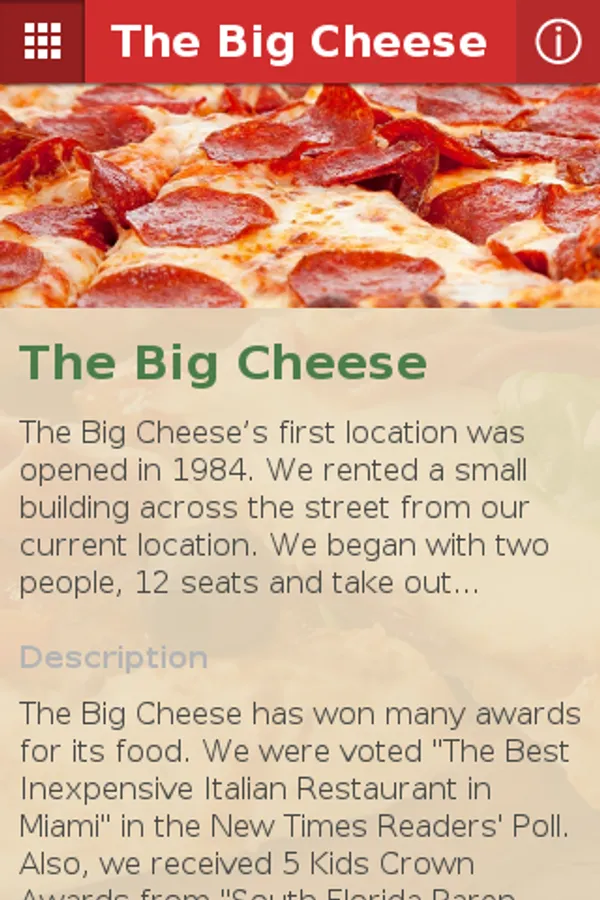 The Big Cheese has won many awards for its food. We were voted "The Best Inexpensive Italian Restaurant in Miami" in the New Times Readers' Poll. Also, we received 5 Kids Crown Awards from "South Florida Parenting Magazine" for the best pizza.