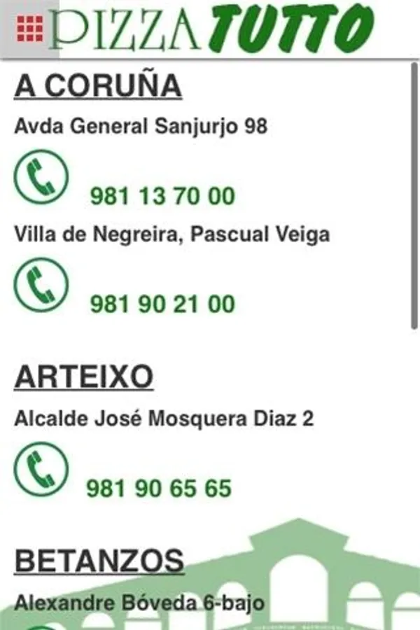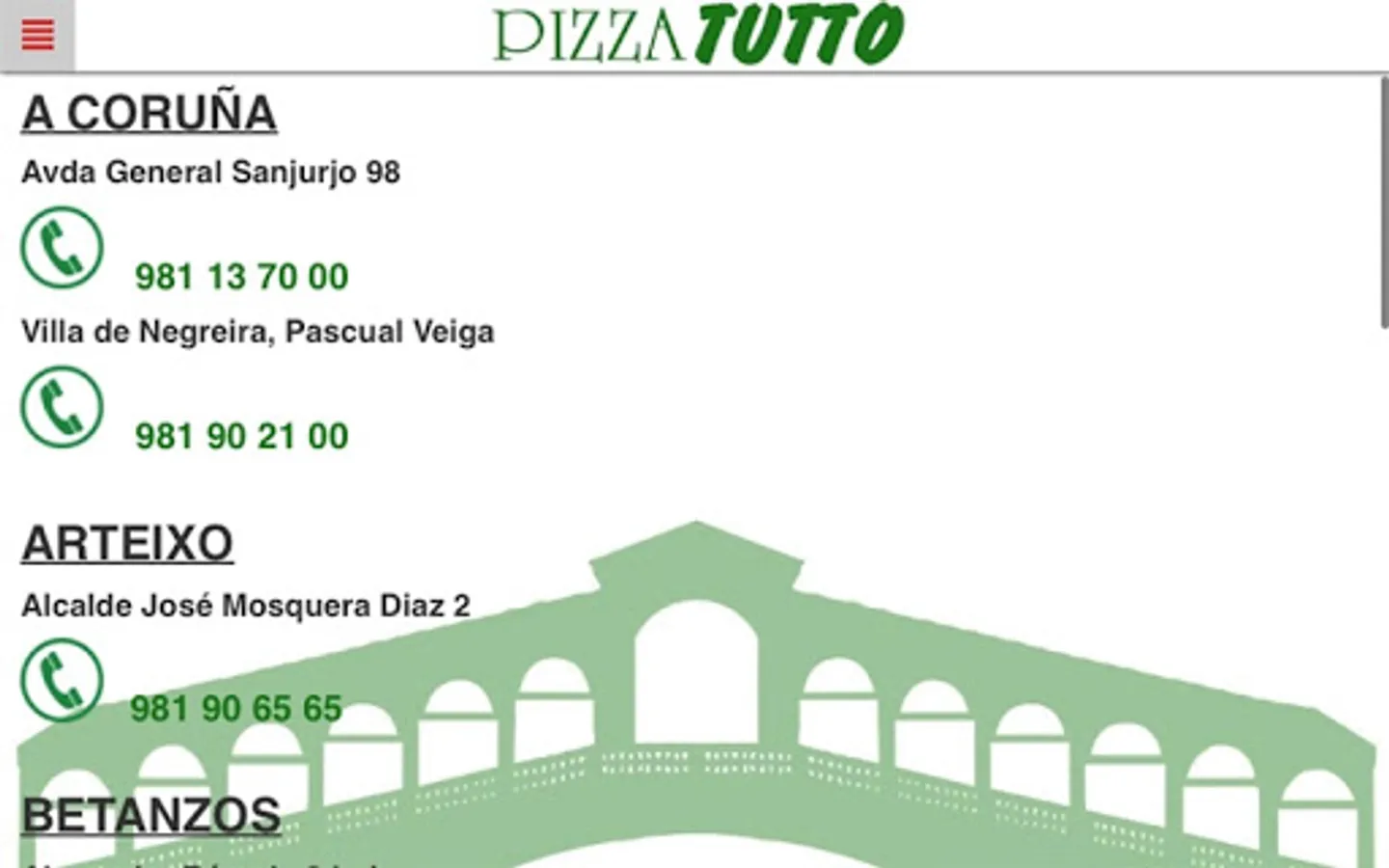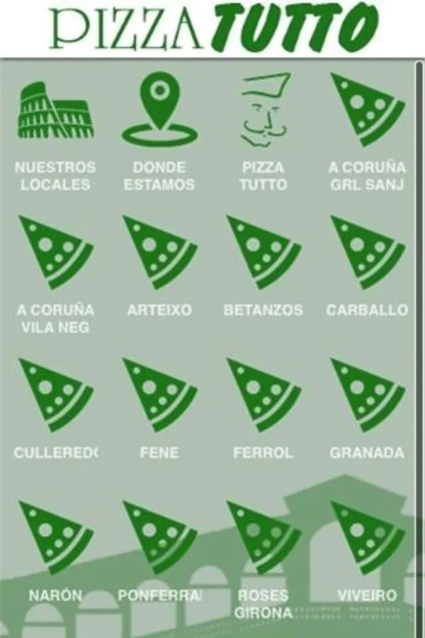 OUR LOCAL, where we are, GENESIS OF PIZZA TUTTO MENUS in A Coruna, ARTEIXO, Betanzos, Carballo, CULLEREDO, FENE, Ferrol, GRANADA, NARÓN, Ponferrada, ROSES GIRONA, VIVEIRO, MAILBOX SUGGESTIONS ...