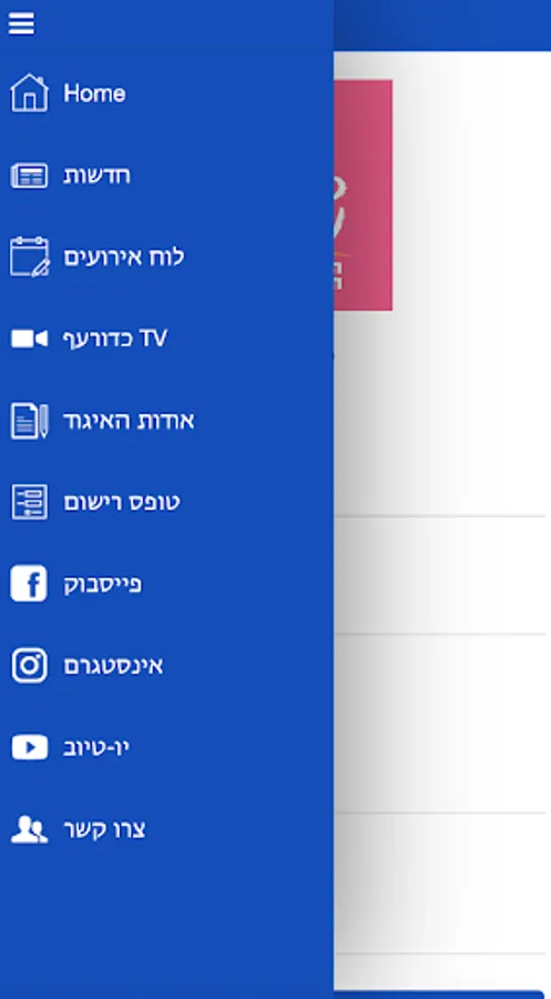 חדשות, אודות האיגוד, מבנה האיגוד, טופס רישום, פייסבוק, יו-טיוב, צרו קשר, גלריית תמונות, אינסטגרם, מועדון ההטבות