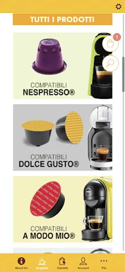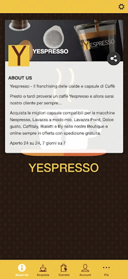 Yespresso - Buy the best coffee pods and capsules compatible with Nespresso machines, Lavazza in my way, Lavazza Point, Lavazza Blue, Nescafè Dolce gusto, Bialetti, Illy, Kimbo in our boutiques and with our app always on offer with free shipping.