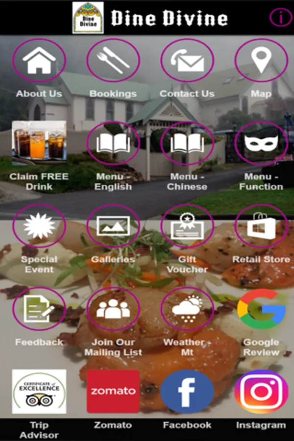 About Us, Bookings, Contact Us, Map, Claim FREE Drink, Menu - English, Menu - Chinese, Menu - Function, Special Event, Galleries, Gift Voucher, Retail Store, Online Shopping, Feedback, Join Our Mailing List, Weather - Mt Dandenong, Google Review, Trip Advisor, Zomato, Facebook, Instagram