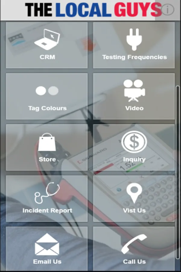 CRM, Testing Frequencies, Tag Colours, Video, Store, Inquiry, Incident Report, Vist Us, Email Us, Call Us