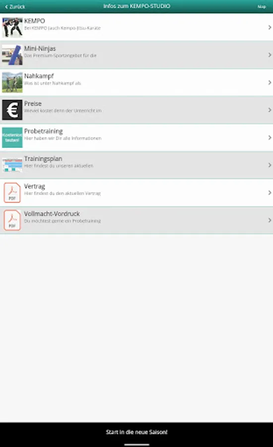 The APP also gives you information about the exciting outdoor courses from the other discipline, close combat.