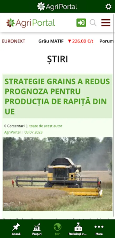 AgriPortal provides prompt, reliable and comprehensive information on what is happening in the main markets for cereals and oilseeds in Romania, the Balkans, Europe, the Black Sea region and the world.