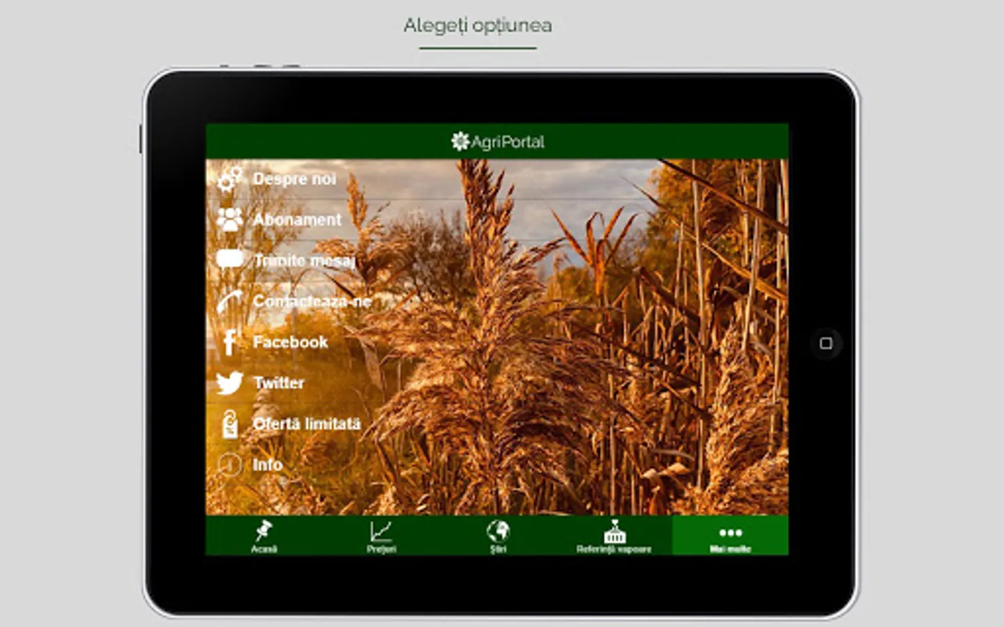 With this application, AgriPortal subscribers can view news, prices and quotes, ship reference, grain exchange, Facebook, Twitter, send questions to the AgriPortal team and receive the latest notifications from the platform.