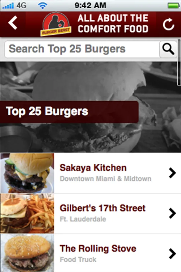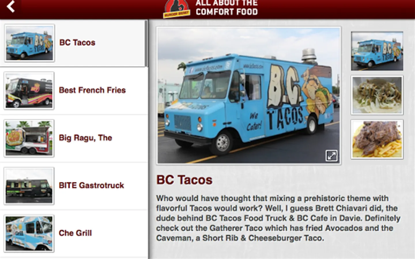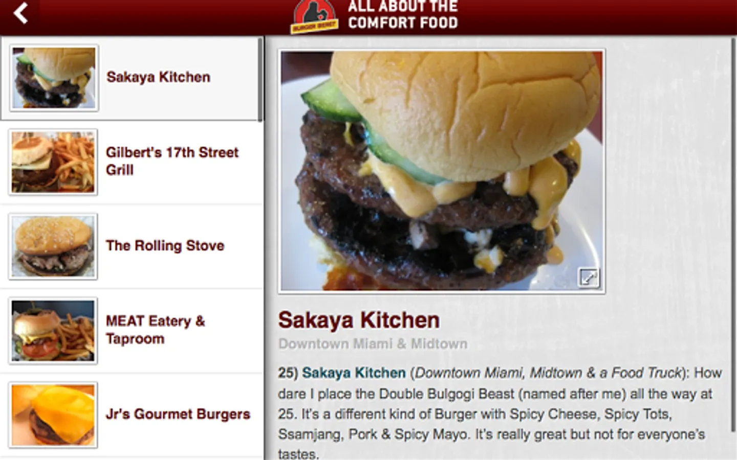 The Burger Beast App is the best way to keep with the Burger Beast, featuring information of Burgers, Burger Beast Events, The Burger Museum, The Best Burgers, Food Trucks & La Frita Cubana.