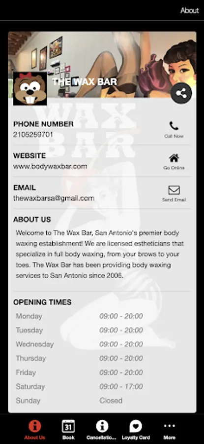 App for clients of The Wax Bar in San Antonio, Texas. Customer loyalty card, schedule appointments, get coupons, find us.