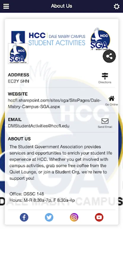 The HCC Dale Mabry Student Activities Office works with the Student Government Association to provide events and activities (both social and educational) throughout the year. We also work directly with 30+ student organizations and clubs. The Student Government Association works for all students and represents their needs and concerns both on campus and the state-wide level.