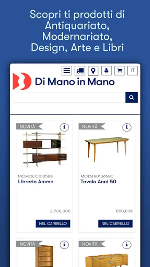 Antiques, Modern Antiques, Design, Art, Online Bookstore, Markets, Reuse, Recycling, Restoration ... all this in one app.