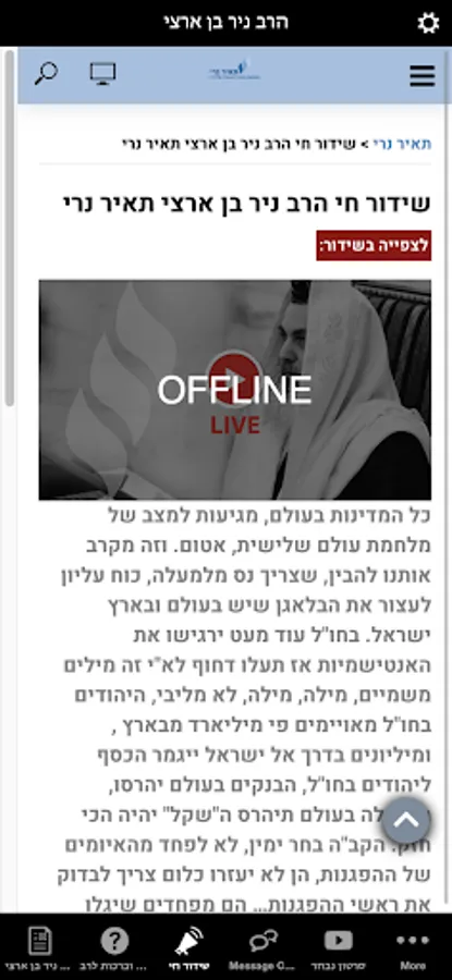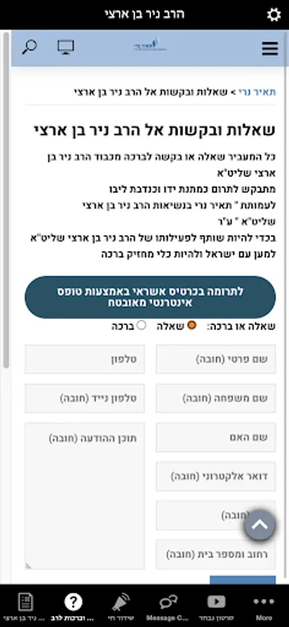 העברת שאלות וברכות לרב, שידור חי מכנסים ושיעורים, מסר שבועי ועלון דיגיטלי קביעת תור לרב, מסר יומי והודעות ועוד