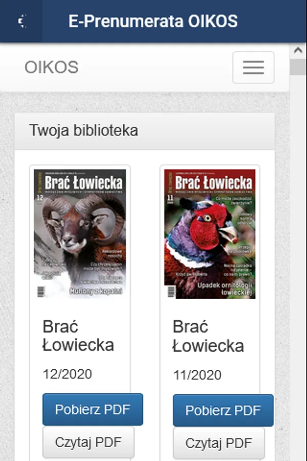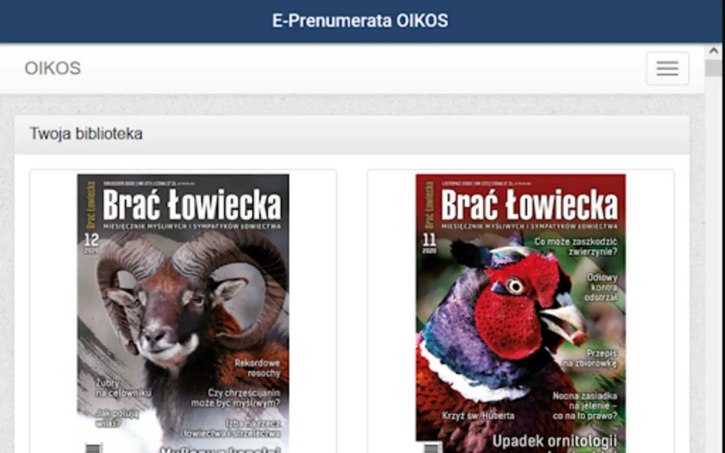 Aplikacja przeznaczona do czytania prenumerat Oficyny Wydawniczej OIKOS.