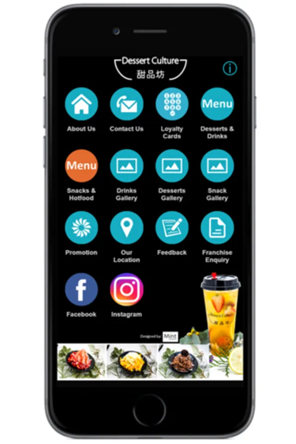About Us, Contact Us, Loyalty Cards, Desserts & Drinks, Snacks & Hot Food Menus, Drinks, Desserts & Snack Gallery, Promotion, Our Location, Feedback, Franchise Enquiry, Facebook and Instagram