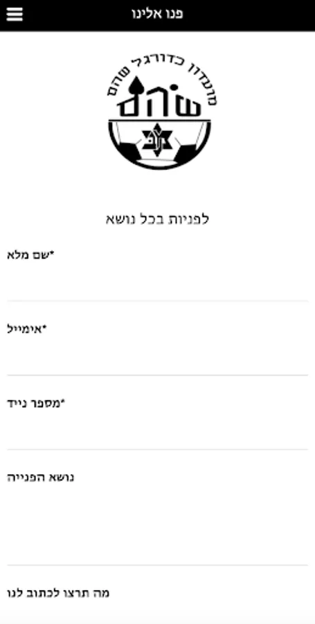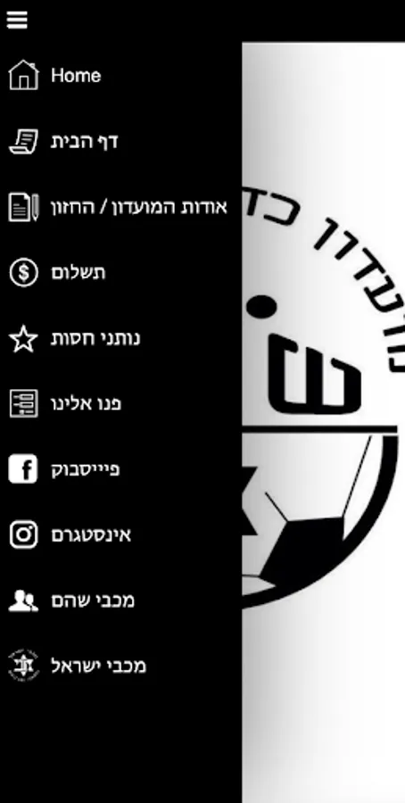 פיייסבוק, אודות המועדון, החזון, הצוות, צור קשר, אינסטגרם, פנו אלינו, נותני חסות, מכבי ישראל
