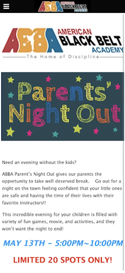 Established in 2012 and grew into one of the largest martial arts center in the area. ABBA martial arts program emphasis on respect, discipline and confidence. We believe martial arts has the power to change child into more focused, goal oriented, confident and strong individuals who can overcome peer pressure and bullies. There will never be a dull moment in our academy