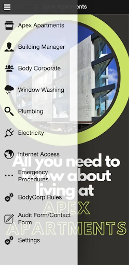 This free application designed by Constant Building Management provides everything you need to know about living at Apex Apartments, 22 Prosford Street. It has been designed to provide useful information about the building and as a convenient way of staying informed about the rules, events or changes happening in or around the complex.