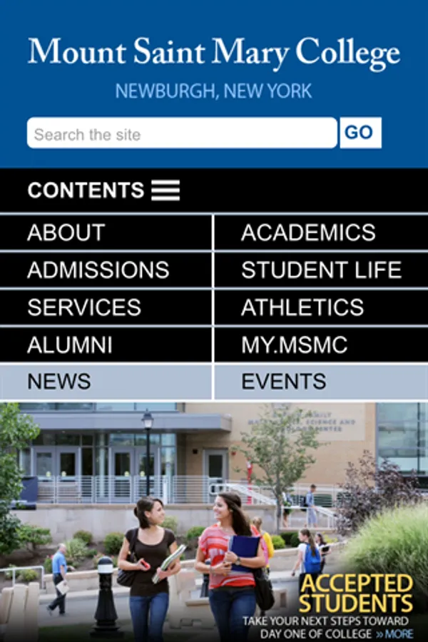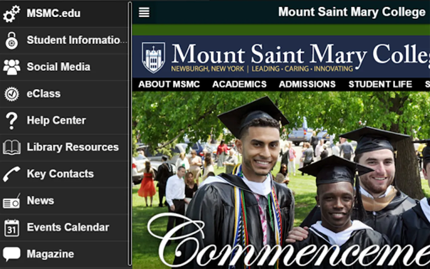MSMC Mobile provides access to resources for those interested or affiliated with Mount Saint Mary College in Newburgh, New York. MSMC Mobile provides convenient mobile access to important resources for students, faculty and staff. Examples of mobile resources include eclass, a self-serve help center, library resources, class schedule, student account information, faculty advising, news and announcements, key contacts and much more.