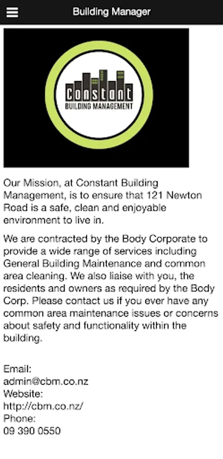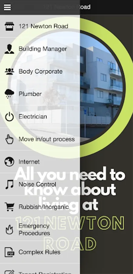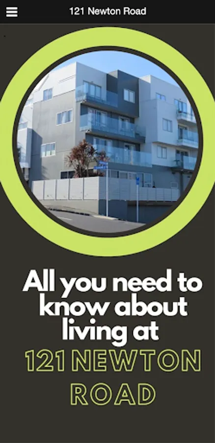 This free application designed by Constant Building Management provides everything you need to know about living at 121 Newton Road. It has been designed to provide useful information about the building and as a convenient way of staying informed about the rules, events or changes happening in or around the complex.