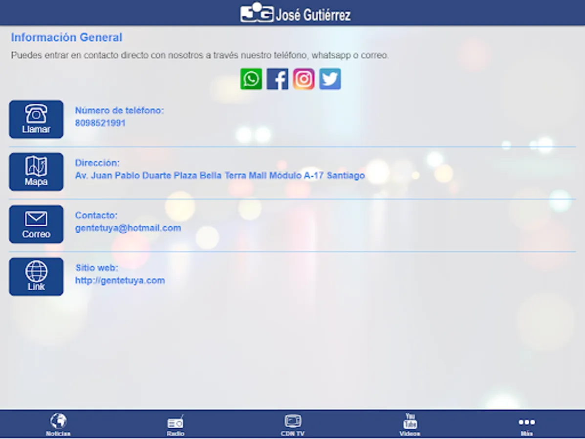 News, Videos, Radio Program, José Gutiérrez in CDN, Reports and Complaints, People Tuya Radio, Instagram, Social Networking, Dating, Sponsors