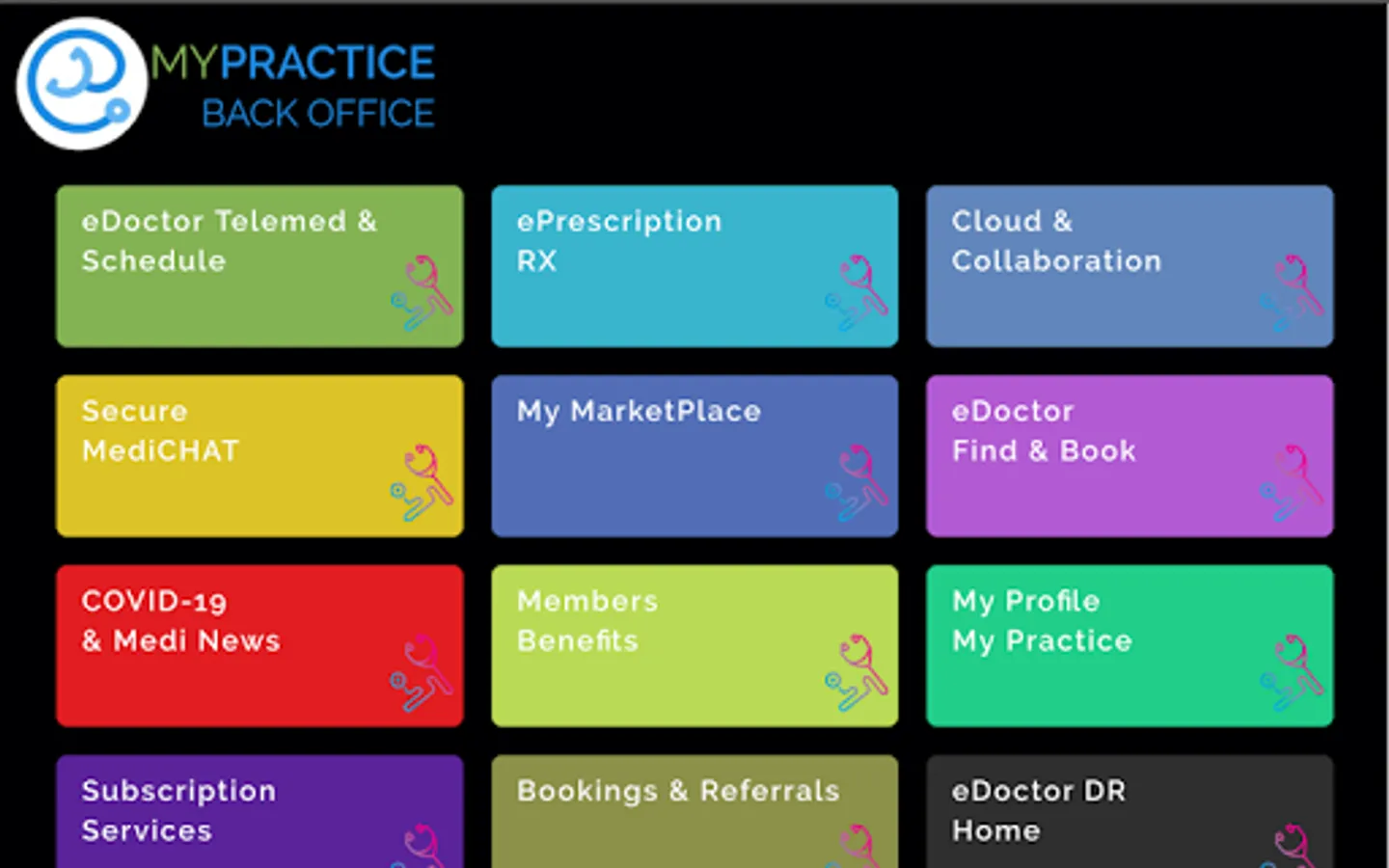 HOME, DR Telemed, MarketPLACE, ePrescribe, Find a DR, MYPRACTICE Settings, Bookings, MY Subscriptions, Medi NEWS, MediCHAT, DR Cloud & Collaborate