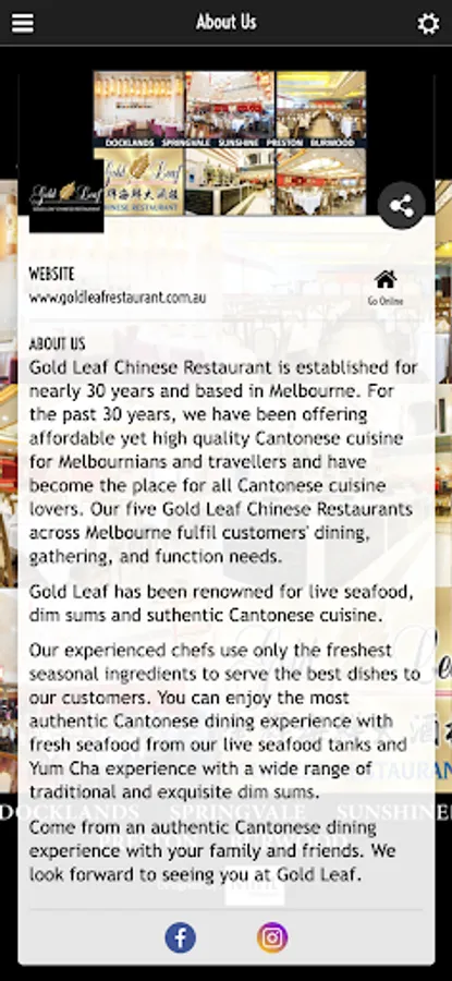 About Us, 5 Locations, Book A Table, Call/Contact Us, Special Offers, Loyalty Cards, Gallery Restaurant, Gallery Dishes, Feedback, Join Our Mailing List, Map, Facebook, Instagram, Twitter